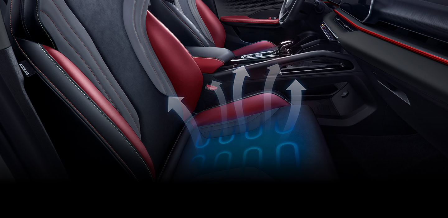 مقاعد مهواة تتكيف مع جسمك، لتمنحك تبريداً شخصياً وراحة فائقة في كل رحلة.